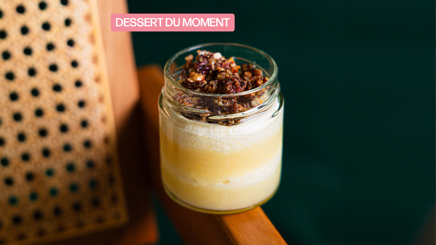 Mousse chocolat et ses noisettes torréfiées. Disponible dans une sélection de pizzerias